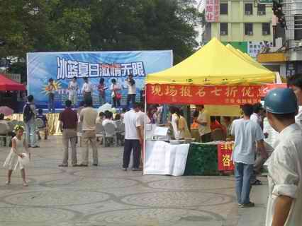 夏日的太陽向人們燒出一滾滾的熱情,廣州商科分公司參加佛山鴻運廣場舉行的“冰藍夏日,激情無限”活動。
