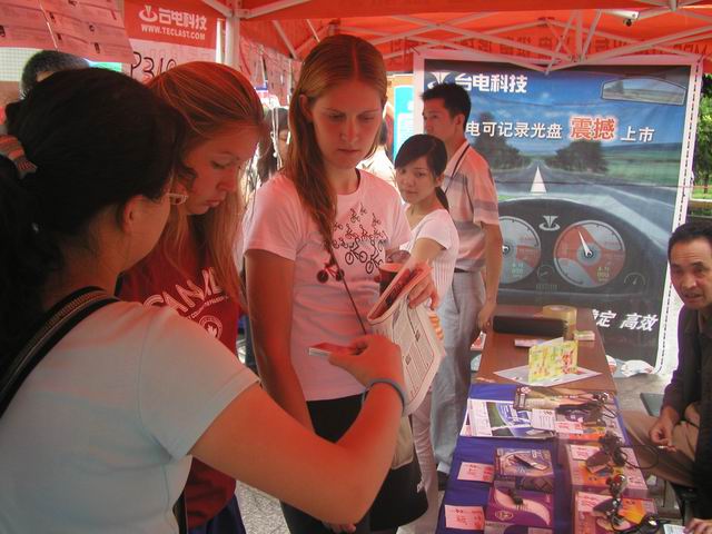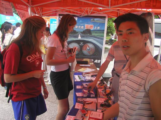23 來,來,來,過來看看,這倆位美國留學生 Francisco 和 Duran 也來到了我們的展示現場。