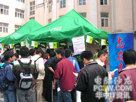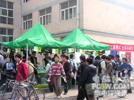 本次華中科技大學(xué)站的巡回展示設(shè)在人氣相對(duì)較旺的華科東區(qū)韻苑學(xué)生公寓內(nèi),整個(gè)演示區(qū)基本上沿襲了前兩站的風(fēng)格,分為產(chǎn)品展示區(qū)及現(xiàn)場(chǎng)演示區(qū)。作為一所理工科為主的學(xué)校,這樣的展示自然吸引了不少同學(xué)駐足圍觀,一大早展臺(tái)還在緊張的布置之中,就有不少同學(xué)前來(lái)觀展及體驗(yàn)。