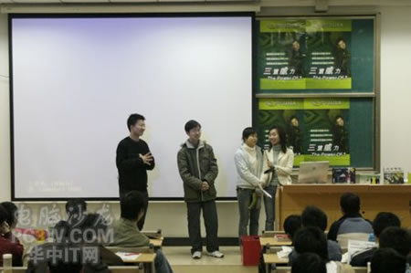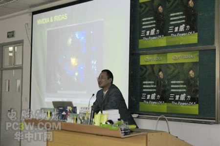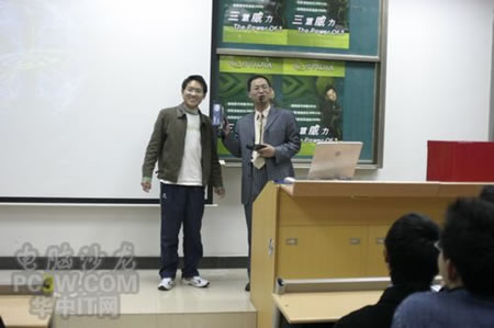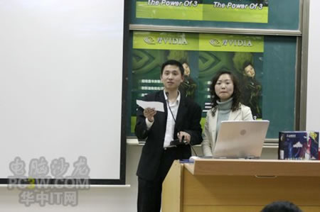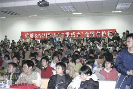 講座首先由商科集團(tuán)武漢分公司天行電腦的唐平安先生發(fā)言,他首先詳細(xì)的向大家解釋了銘瑄NVIDIA“三重威力”的定義。并就“三重威力”的具體內(nèi)容SM3.0、HDR以及SLI逐一做了詳細(xì)的說(shuō)明,并分析了未來(lái)顯卡的發(fā)展趨勢(shì)。他生動(dòng)詳細(xì)的演講讓在場(chǎng)的同學(xué)們聽(tīng)得聚精會(huì)神,對(duì)其產(chǎn)品有著濃厚的興趣。