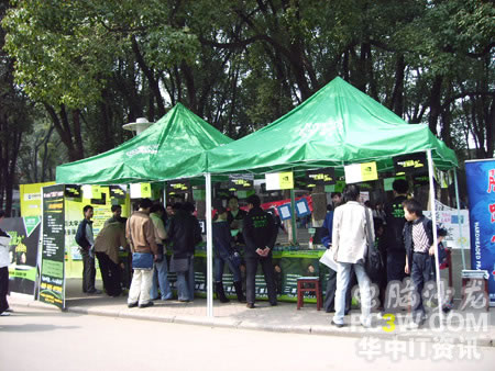 產品展示及現場演示區設在華中師范大學主校區學子餐廳門前。整個演示區基本上沿襲了上一站武漢大學站的風格,分為產品展示區及現場演示區。