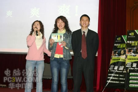 又是一位幸運的MM被抽中并上臺領獎,引起臺下男生的一片嘆息聲,難道華師真的是傳說中的“陰盛陽衰”?大獎難道都要被MM包攬?