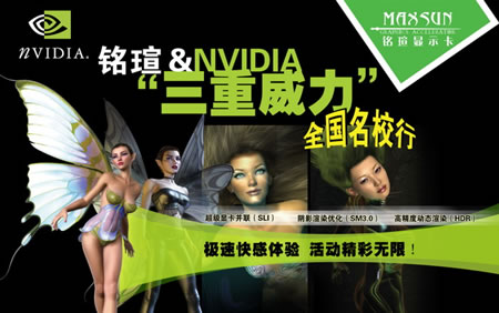 全球最大的顯示芯片供應(yīng)商之一的NVIDIA早已家喻戶曉,而銘瑄顯卡是國內(nèi)最大的顯卡品牌之一,長期以來雙方一直保持著良好的合作關(guān)系,此次再度合作舉行校園巡展活動,正是“三重威力”先進顯示技術(shù)推廣的延續(xù)。