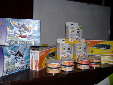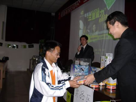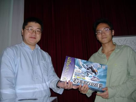本次活動包括現(xiàn)場抽獎環(huán)節(jié),獎品包括CD刻錄光盤、鍵盤鼠標套裝、攝像頭和高性能Geforce6顯卡等等,非常豐富。
