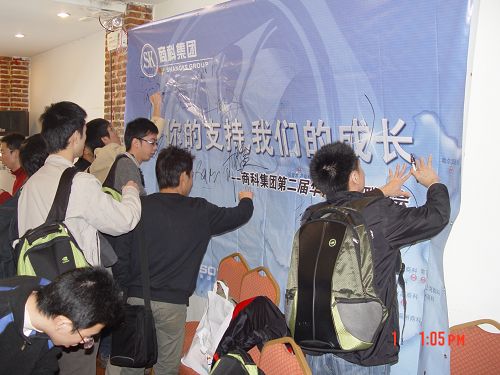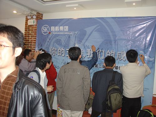 在會(huì)議結(jié)束的最后,我們請(qǐng)上了所有的媒體精英們?cè)谖覀儨?zhǔn)備的背景板上寫下了對(duì)商科的祝福,明天會(huì)更好!
