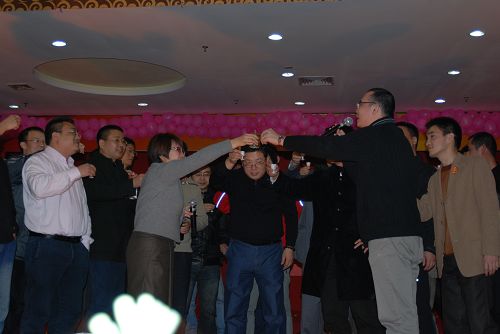 不知不覺兩個多小時已經過去了,在同事們快樂的笑聲中,游戲節目圓滿結束了。大家大概也都饑腸轆轆了,公司為全體員工準備了豐盛的晚宴享用,大餐開始了。