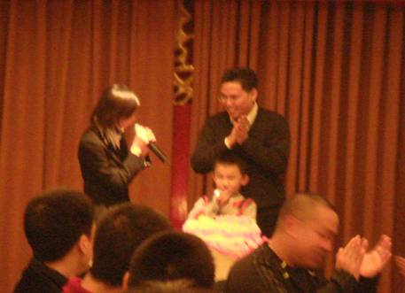 當然不只有蛋糕,禮物早準備好了,由副總經理劉險峰先生為陳總送上賀禮,19寸液晶顯示器一臺。