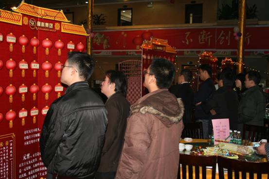 在晚會開始之前,公司準備了有趣的燈謎競猜活動,先到的同事愉快的加入到活動中。