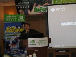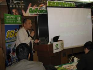 NV廣州區(qū)銷售經(jīng)理楊成發(fā)表講話,楊先生用極富感染力的演講方式向經(jīng)銷商家講述NV專業(yè)顯卡Quadro和NV的CUDA技術(shù),及產(chǎn)品的規(guī)劃、性能特點以及市場優(yōu)勢。