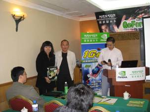 另外楊成先生還抽出本次培訓(xùn)會的第一個大獎, 銘瑄9500GT高清版顯卡一片, 及NV精美腰包一個。