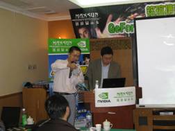 2009年3月10日下午14時,銘瑄攜手NVIDIA GeForce內(nèi)功威力四射全國經(jīng)銷商培訓(xùn)會東莞分站部分的會議正式在東莞篁勝酒店舉行。本次培訓(xùn)會主要針對銘瑄的顯卡產(chǎn)品和NVIDIA的高精尖技術(shù)向與會的經(jīng)銷商代表進行講解,幫助經(jīng)銷商樹立品牌信心,在新年的開端也是銷售旺季來之際,鞏固以往的銷售成果,攜手銘瑄共創(chuàng)輝煌。同時我們還邀請來了NV方面的代表,為大家講解了NV的專業(yè)顯卡Quadro和NV的CUDA技術(shù)以及物理加速技術(shù)。