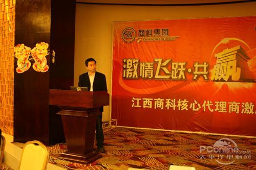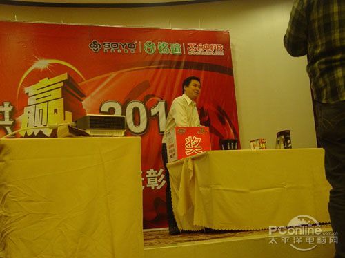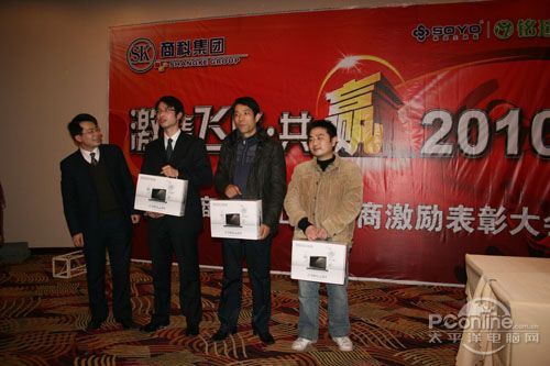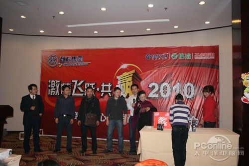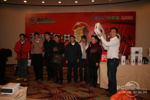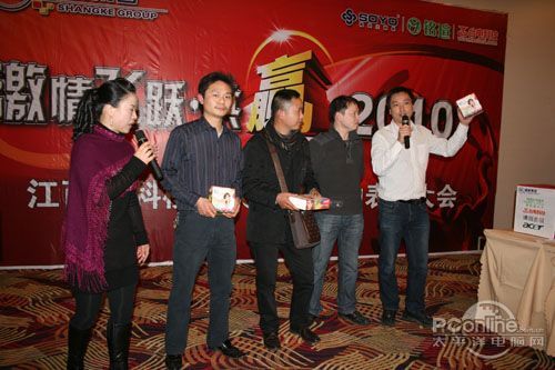 本次會(huì)議有眾多經(jīng)銷商應(yīng)邀赴會(huì),更有來自NVIDIA和intel的嘉賓光臨現(xiàn)場(chǎng),其中包括來自NVIDIA公司的彭華先生,以及INTEL公司的吳偉先生。而我們太平洋電腦網(wǎng)江西站作為到會(huì)的媒體代表,也被作為嘉賓介紹給大家。與上面的幾位重量級(jí)人物一起被主持人隆重介紹給廣大商家,筆者實(shí)在是感到有點(diǎn)汗顏!會(huì)議首先由NVIDIA公司的彭華先生為大家介紹阿凡達(dá)與NVIDIA的淵源(原來《阿凡達(dá)》出色的CG效果可是由NVIDIA的顯卡打造而成的)以及NVIDIA公司的新技術(shù)與政策。然后再由江西商科總經(jīng)理吳暉先生講話,再后就是對(duì)2009年度成績(jī)突出的商科合作伙伴進(jìn)行表彰頒獎(jiǎng)(獎(jiǎng)品非常豐厚哦,竟然是臺(tái)電上網(wǎng)本)。最后就是激動(dòng)全場(chǎng)的抽獎(jiǎng)活動(dòng)了!