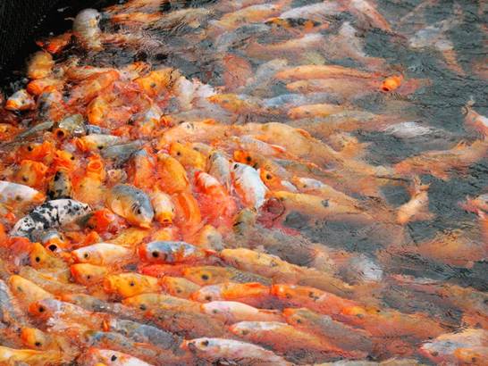 吉祥鎖 鎖島緊鄰魚島,魚島上有很多魚,我們準備了些食物喂魚, 魚兒們為了搶到食物,它們擠作一團。