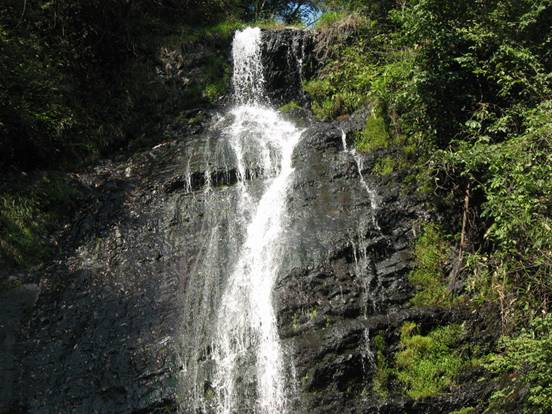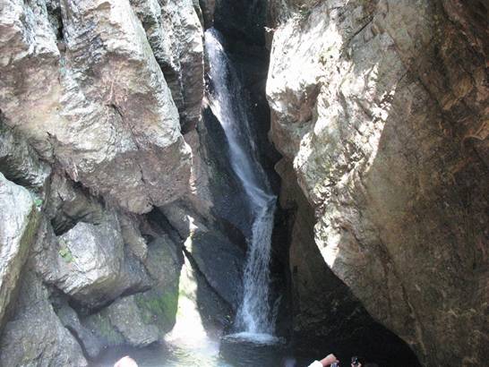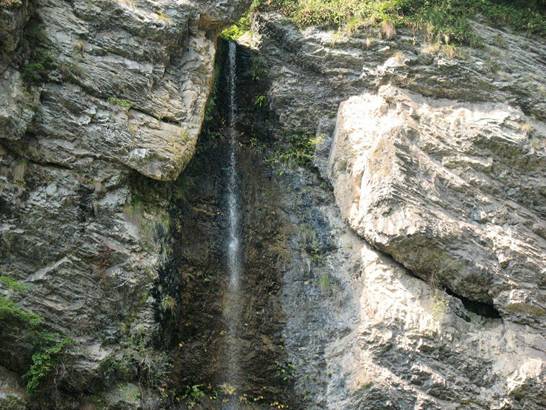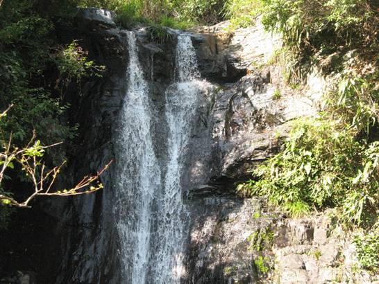 一線瀑 前行數米,老遠就聽見驚天動地的“雷”聲,走近了才知那瀑布隱藏在一個巨大的石洞內,像龍嘴里吐出的白練,故稱之為龍喉瀑,上游之水如游龍一般通過一個跌巖穿入一個石縫,在石縫窟窿里形成一個“之”字形瀑布,因有石洞包圍,垂落下來時,其聲如虎狼咆哮,真是壯觀和驚心動魄。
