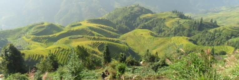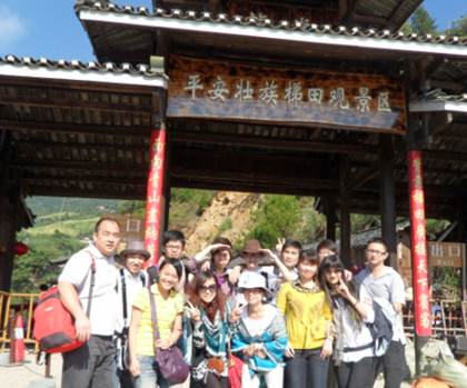 在欣賞了被世界地質學權威稱為“舉世罕見的巖溶奇觀”; 地下藝術宮殿,佳景薈萃的聚龍潭我們踏上了龍脊梯田的行程。