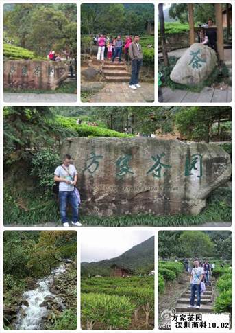 據(jù)當?shù)貙в谓榻B,“方家茶園”乃是香港無線電視臺《茶是故鄉(xiāng)濃》的外景拍攝地,因為賀州姑婆山良好地氣候和土質(zhì)等因素,造就了無污染的高山云霧茶---方家茶葉;走進依偎在群山中的“方家茶園”時,呈現(xiàn)在眼前的是一起一伏、郁郁蔥蔥的茶葉在十月溫暖的陽光下綠波閃耀的美景。。。