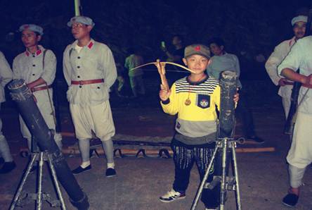 晚上我們到井岡山市區(qū),觀看紅軍劇場的井岡山大型實(shí)景演出。整個(gè)演出由600多名當(dāng)?shù)氐娜罕娧輪T參演,雖然演員都是業(yè)余的,但1個(gè)多小時(shí)的演出卻是感人肺腑。尤其是賀子珍把孩子托給老鄉(xiāng)大媽與孩子離別的這場戲,很多觀眾都流下了眼淚。演出的最后毛主席帶領(lǐng)紅軍離開井岡山,幾百人的紅軍隊(duì)伍,牽著騾馬,經(jīng)過觀眾席與大家道別后依次列隊(duì)劇場出口的兩旁,送觀眾出場,與觀眾合影,感覺好像回到了那個(gè)軍民一家親的年代。