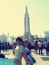八一廣場,我們一到廣場,音樂響起,各式噴泉隨音而擺,大家興奮得手舞足蹈,爭先擺好POSS,“咔嚓”,咔嚓“!