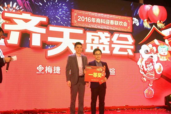 商科總經(jīng)理孫武安先生首先為大家獻上新年祝詞。宴會開始進入第一環(huán)節(jié)“大圣歸來 勇挑重擔”——年度優(yōu)秀員工頒獎盛典。公司為在過去的2015年里辛勤為商科默默奉獻、表現(xiàn)優(yōu)異的員工頒發(fā)榮譽勛章,每位獲獎人員都獲得了獎狀和豐厚的獎金。