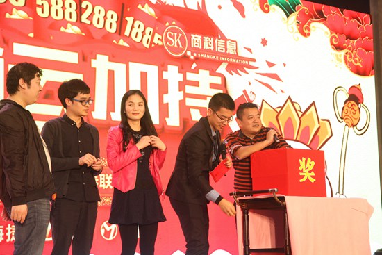商科集團熊董及各部門經(jīng)理紛紛上臺抽取各類豐富的現(xiàn)金大獎及獎品。