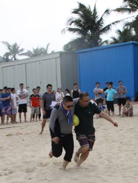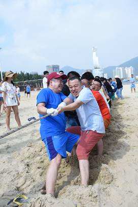 頭頂藍(lán)天,沐浴陽光,具有競技性的沙灘排球比賽開始了,大家光著腳板在金色柔軟的沙灘上,盡情的跳躍、翻滾、流汗,享受著這美妙的時(shí)光,充分釋放自己的好心情。
