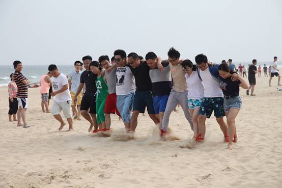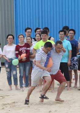 接下來是歡樂的趣味接力活動(dòng)啦,這一環(huán)節(jié)講究的不僅是速度,隊(duì)員的配合也十分重要。雙人夾氣球、背人跑、雙人咬紙巾、抬人跑、轉(zhuǎn)圈跑,大家玩的不亦樂乎,加油聲、呼喊聲、笑聲充斥著整片沙灘!