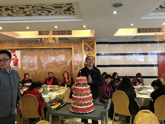 返程當天,恰逢是商科集團總經(jīng)理孫總的生日,午飯期間,大伙們悄悄準備了生日蛋糕和小禮物,并送上生日歌和美好的祝福,現(xiàn)場歡聲不斷,連旁邊桌的朋友們都忍不住放下手上的美味,共同為孫總慶賀生日。