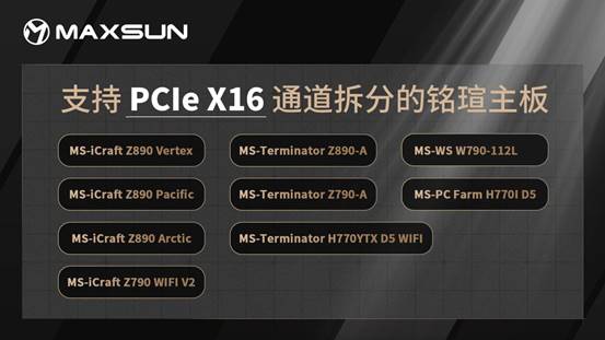 MAXSUN Intel Arc Pro B60 Dual 48G Turbo采用PCIe5.0 X8+PCIe5.0 X8接口設計,只需主板支持PCIe X16 通道拆分為 X8+X8,即可在消費級平臺上實現高效運行,大幅降低部署大模型的整機成本。銘瑄多款主板支持PCIe X16通道拆分,助力顯卡雙芯性能滿血釋放,真正實現性價比之選,讓更多用戶能夠擁抱本地大模型。